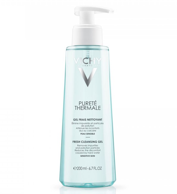 PURETE THERMALE Gel Frais Nettoyant purifie le visage en profondeur tout en le protégeant du dessèchement. Il laisse la peau nette et ravive le teint.